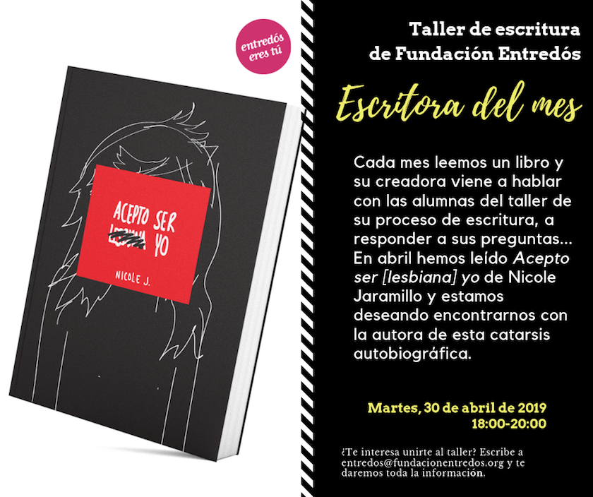 Mañana tendremos a Nicole Jaramillo en nuestro taller de escritura de Fundación Entredós. Hemos leído su autobiografía Acepto ser yo y tenemos muchas preguntas. ¡Gracias por visitarnos, Nicole!