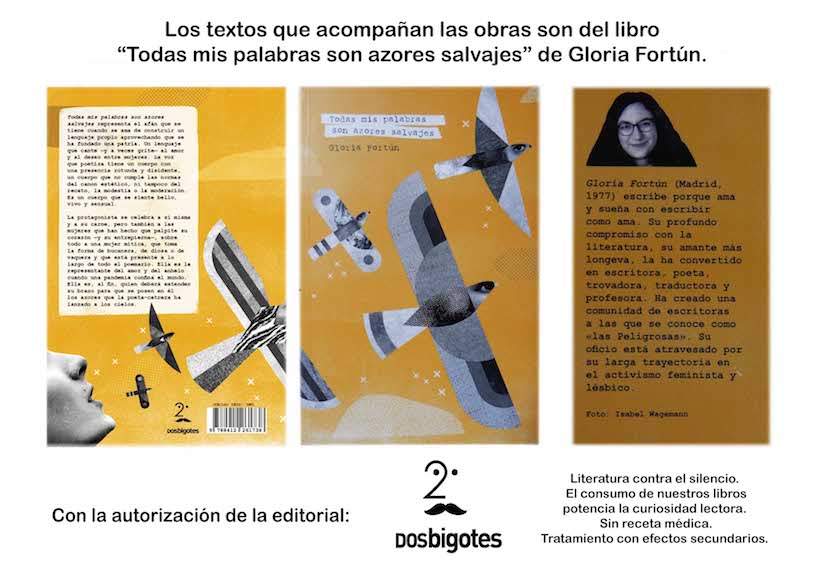 ¡Qué bonitas, las cosas que pasan con mis azores! Mañana, 11 de junio, se inaugura en Altura, Castellón, la exposición Mujeres que se quieren del artista pinos, quien va a utilizar junto a sus preciosos cuadros, versos de mi poemario Todas mis palabras son azores salvajes. Esta exposición tiene el patrocinio del Ayuntamiento de Altura y el motivo es la celebración del Orgullo LGBT+.