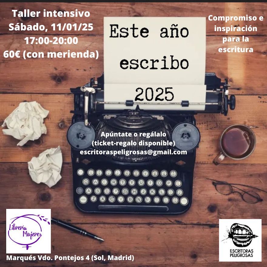 ESTE AÑO ESCRIBO 2025 – Al cuidado de Gloria FortúnTaller intensivo presencial en Librería Mujeres (centro de Madrid)Sábado, 11 de enero de 2025, 17:00-20:00Precio: 60€ (incluye merienda)Más información, apúntate o solicita un ticket regalo para la escritora de tu vida aquí: escritoraspeligrosas@gmail.com 2025 está a punto de empezar y quizá por fin hayas decidido ponerteSigue leyendo «Este año escribo 2025»