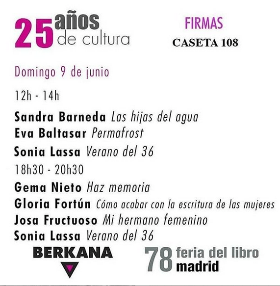Mi querida Gema Nieto y yo os esperamos hoy en la Feria del Libro de Madrid, de 18:30 a 20:30 en la caseta de la librería Berkana. ¡Hacednos una visitita, porfa!