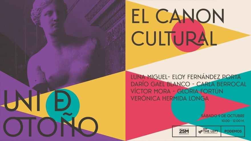 El sábado por la mañana estaré en la Universidad de Otoño de Podemos para debatir sobre el canon cultural y es imposible hacerlo en mejor compañía que esta: Luna Miguel, Eloy Fernández Porta, Darío Gael Blanco, Carla Berrocal y Víctor Mora. Modera Verónica Hermida Longa. Sábado, 9 de octubre, de 10:00 a 12:00 en RivasSigue leyendo ««El canon cultural» en la Universidad de Otoño»